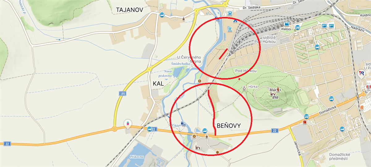 ✅ Komunikace Beňovy – Červený mlýn (od silnice I/22 k železničnímu přejezdu)