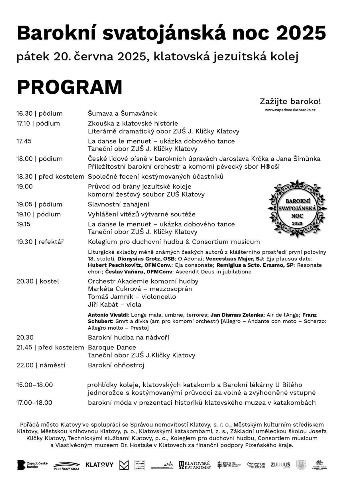 Srdečně vás zveme na tradiční barokní slavnost, která promění historické centrum Klatov v místo plné hudby, divadla, tance, kostýmů a nezapomenutelné atmosféry! 🌟