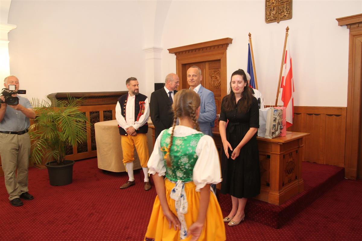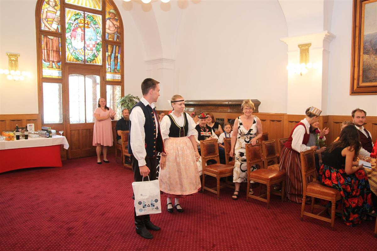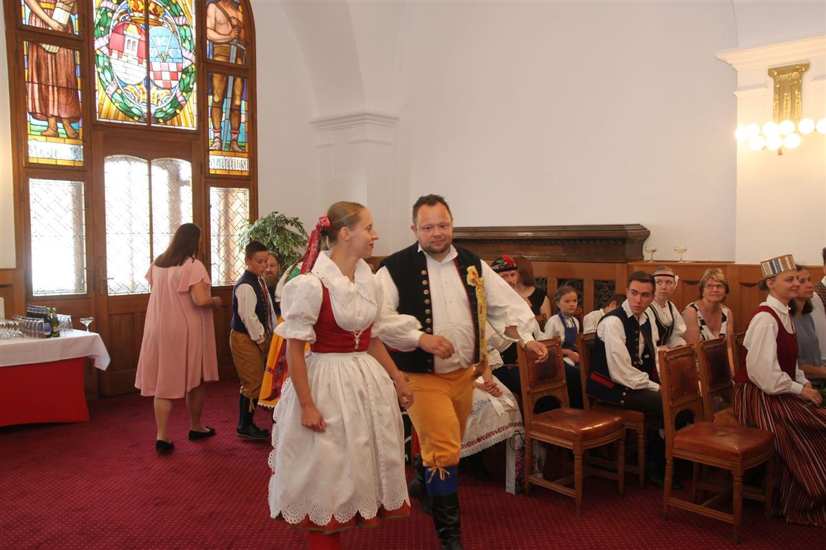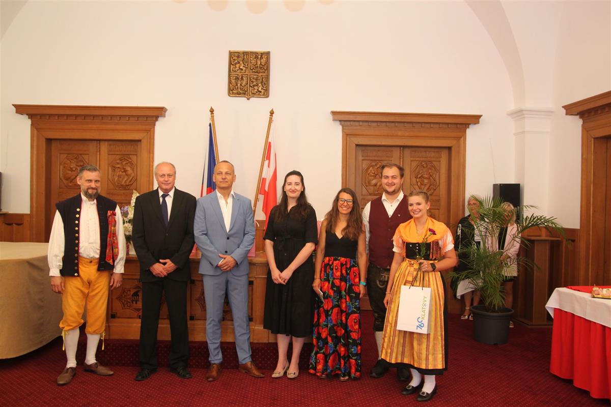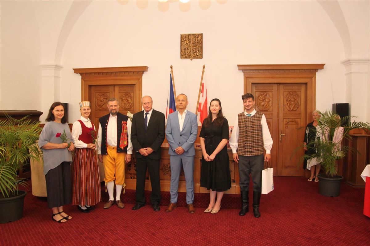 V sobotu 13. července 2024 slavnostně přivítal na klatovské radnici pan starosta Rudolf Salvetr s panem místostarostou Martinem Křížem a tajemníkem Městského úřadu v Klatovech Michaelem Novým zástupce 8 folklórních souborů.
