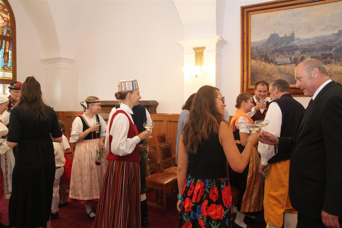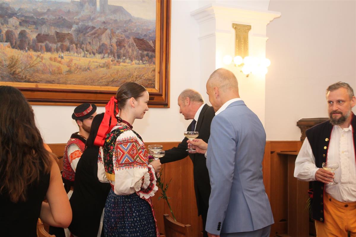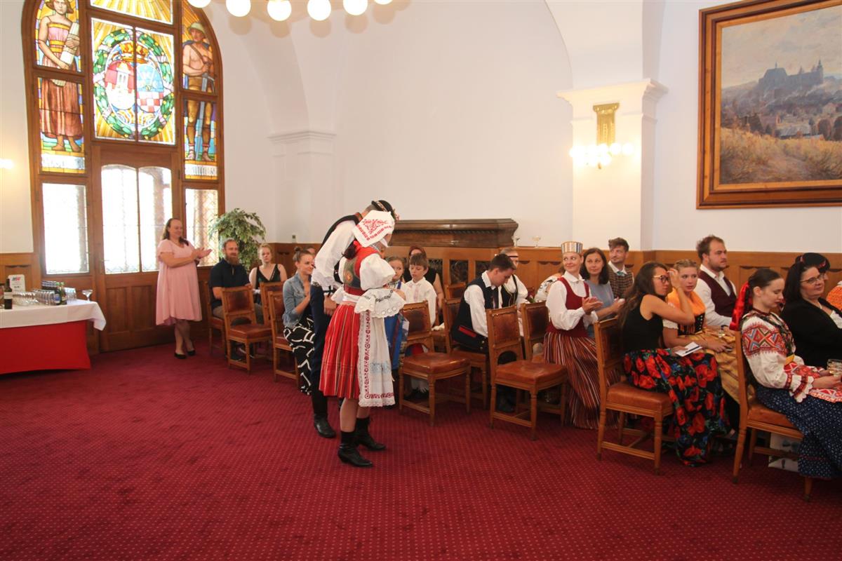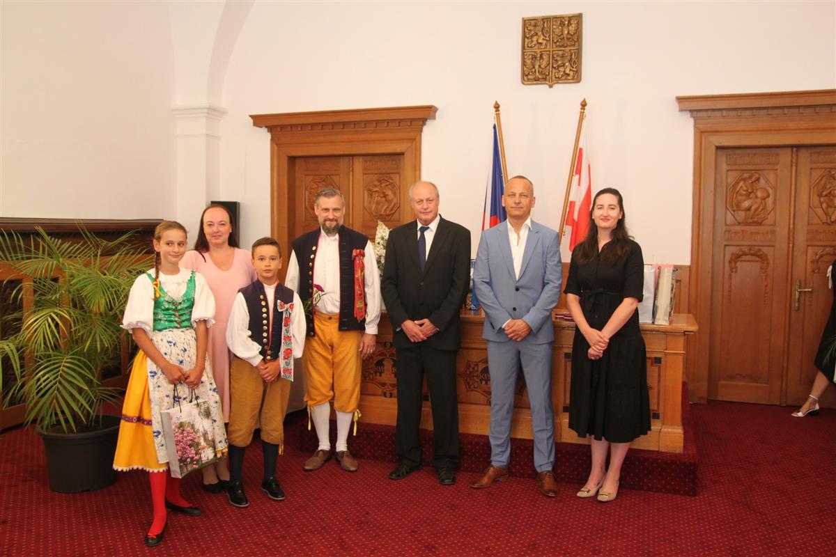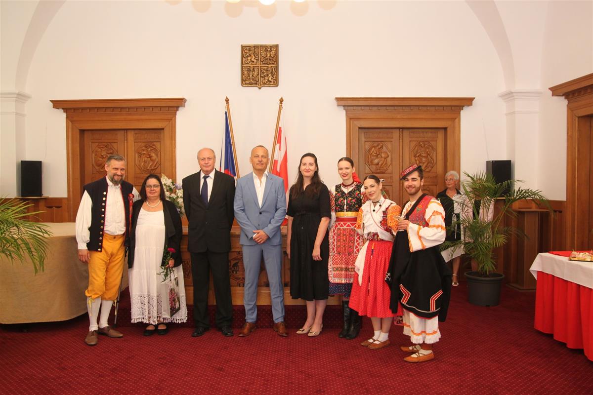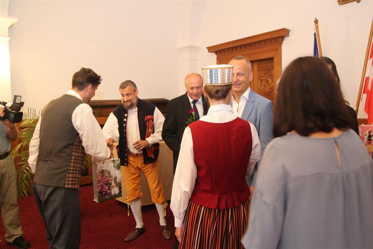 V sobotu 13. července 2024 slavnostně přivítal na klatovské radnici pan starosta Rudolf Salvetr s panem místostarostou Martinem Křížem a tajemníkem Městského úřadu v Klatovech Michaelem Novým zástupce 8 folklórních souborů.