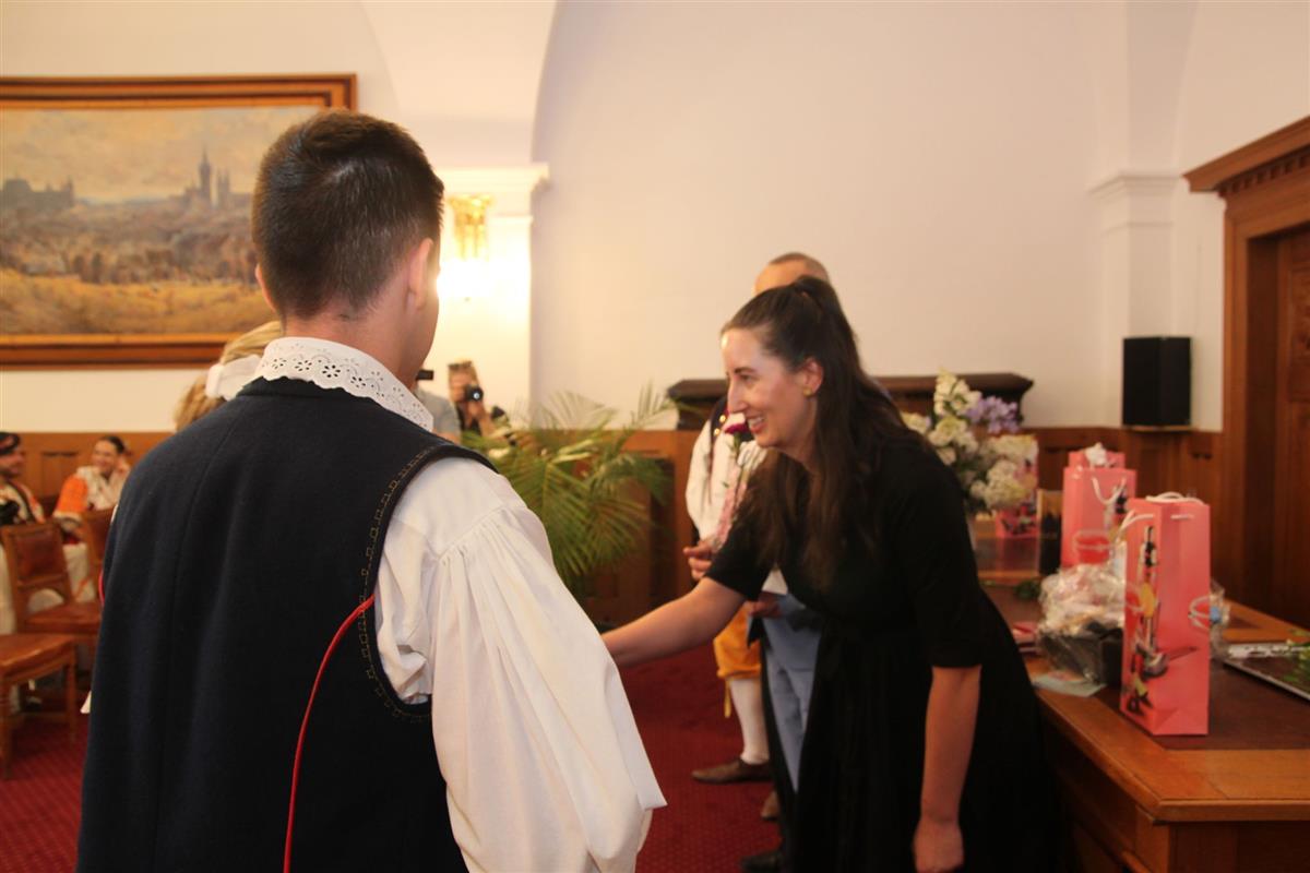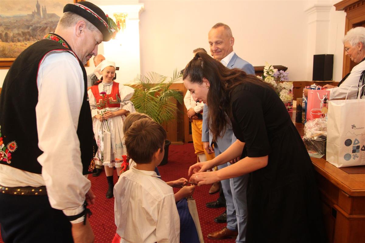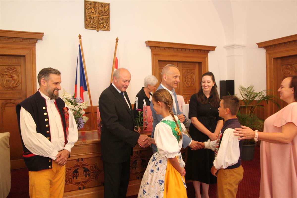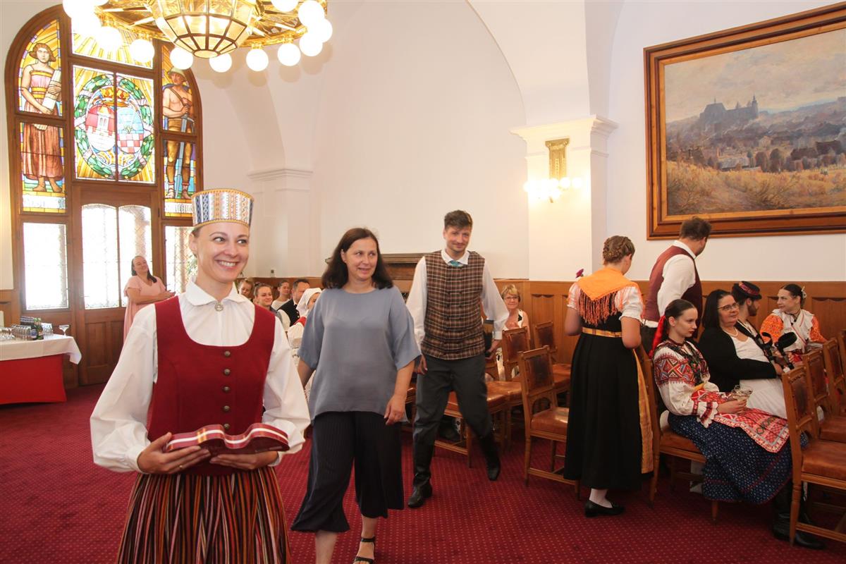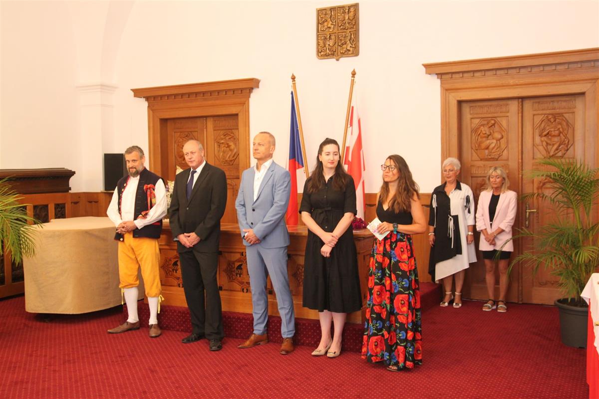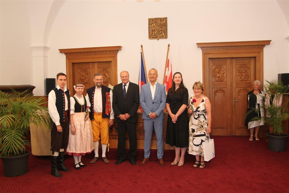V sobotu 13. července 2024 slavnostně přivítal na klatovské radnici pan starosta Rudolf Salvetr s panem místostarostou Martinem Křížem a tajemníkem Městského úřadu v Klatovech Michaelem Novým zástupce 8 folklórních souborů.