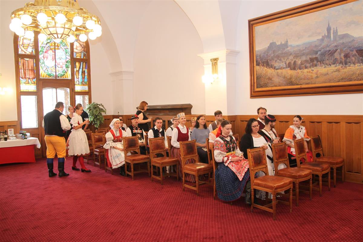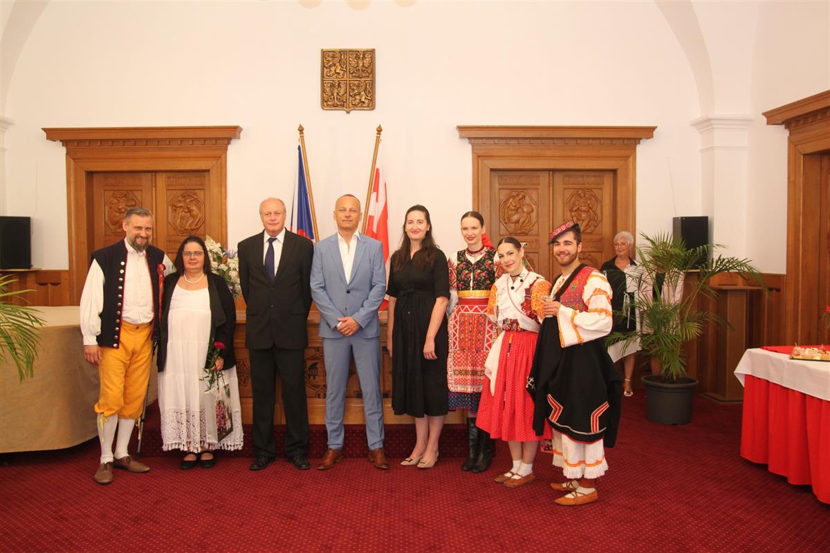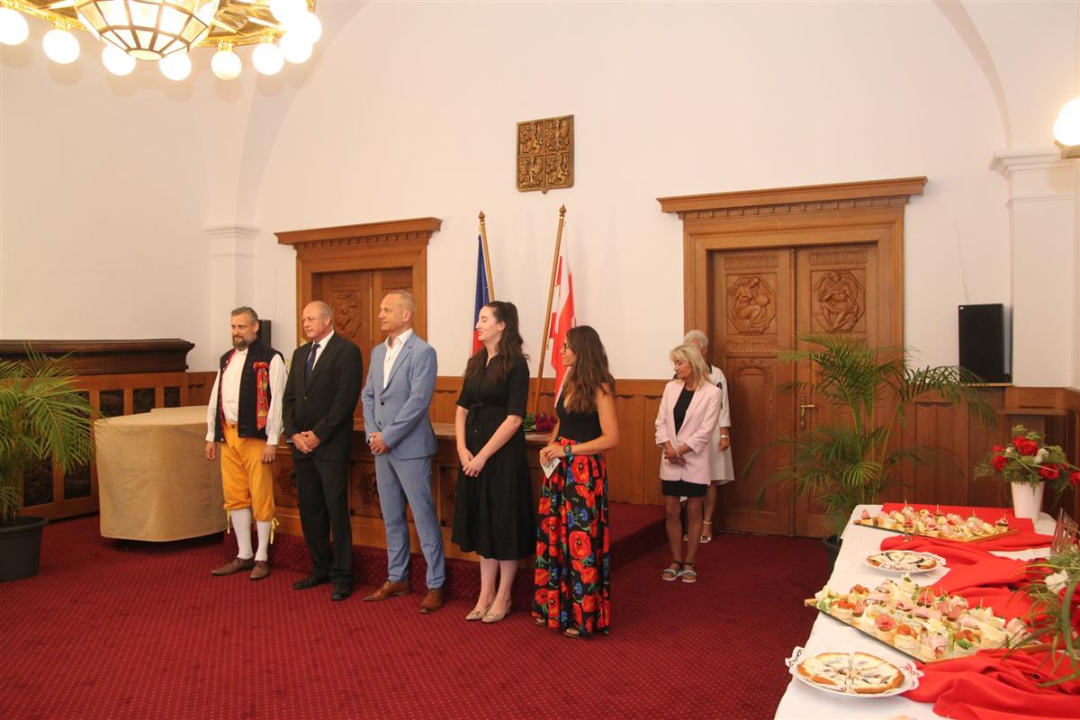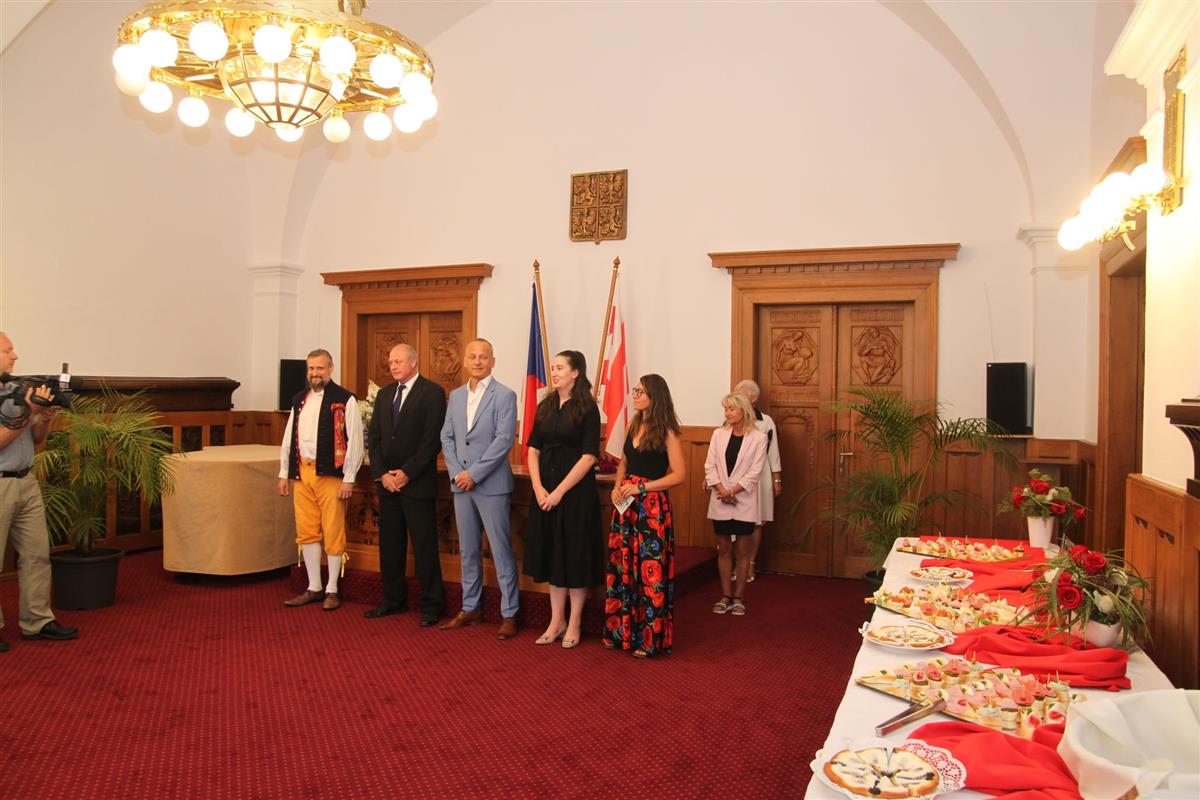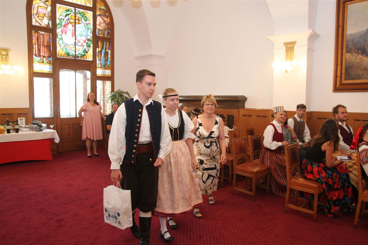 V sobotu 13. července 2024 slavnostně přivítal na klatovské radnici pan starosta Rudolf Salvetr s panem místostarostou Martinem Křížem a tajemníkem Městského úřadu v Klatovech Michaelem Novým zástupce 8 folklórních souborů.