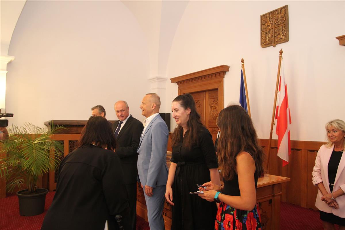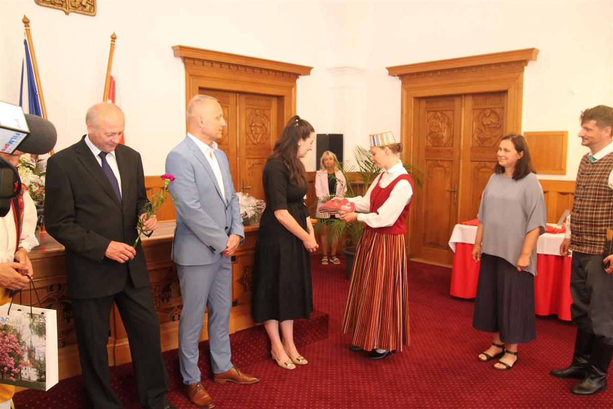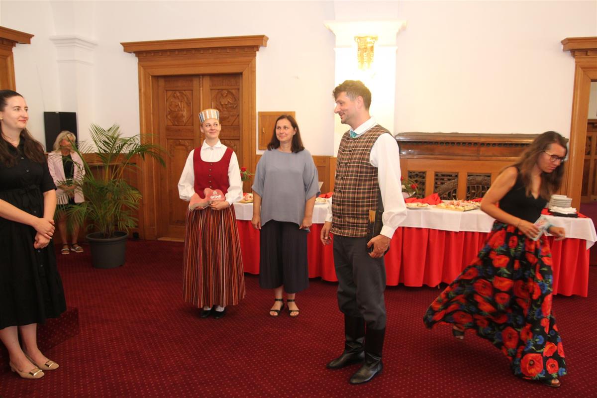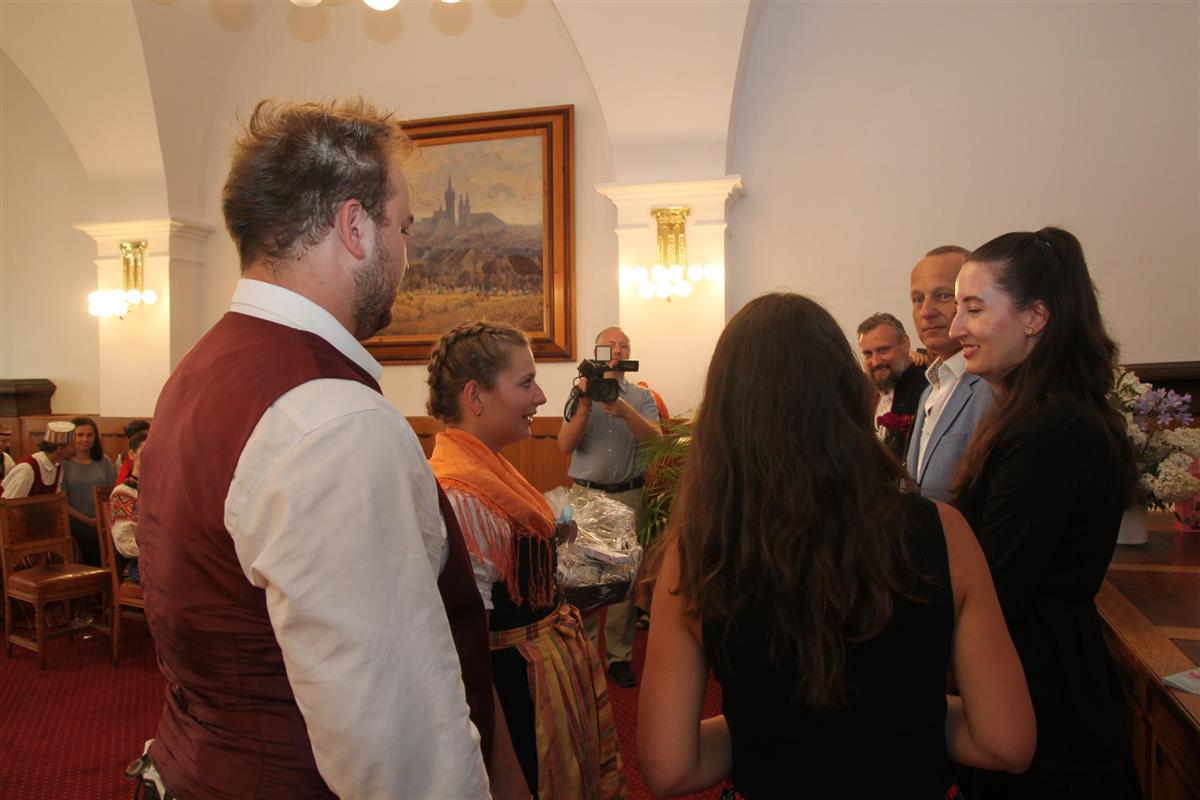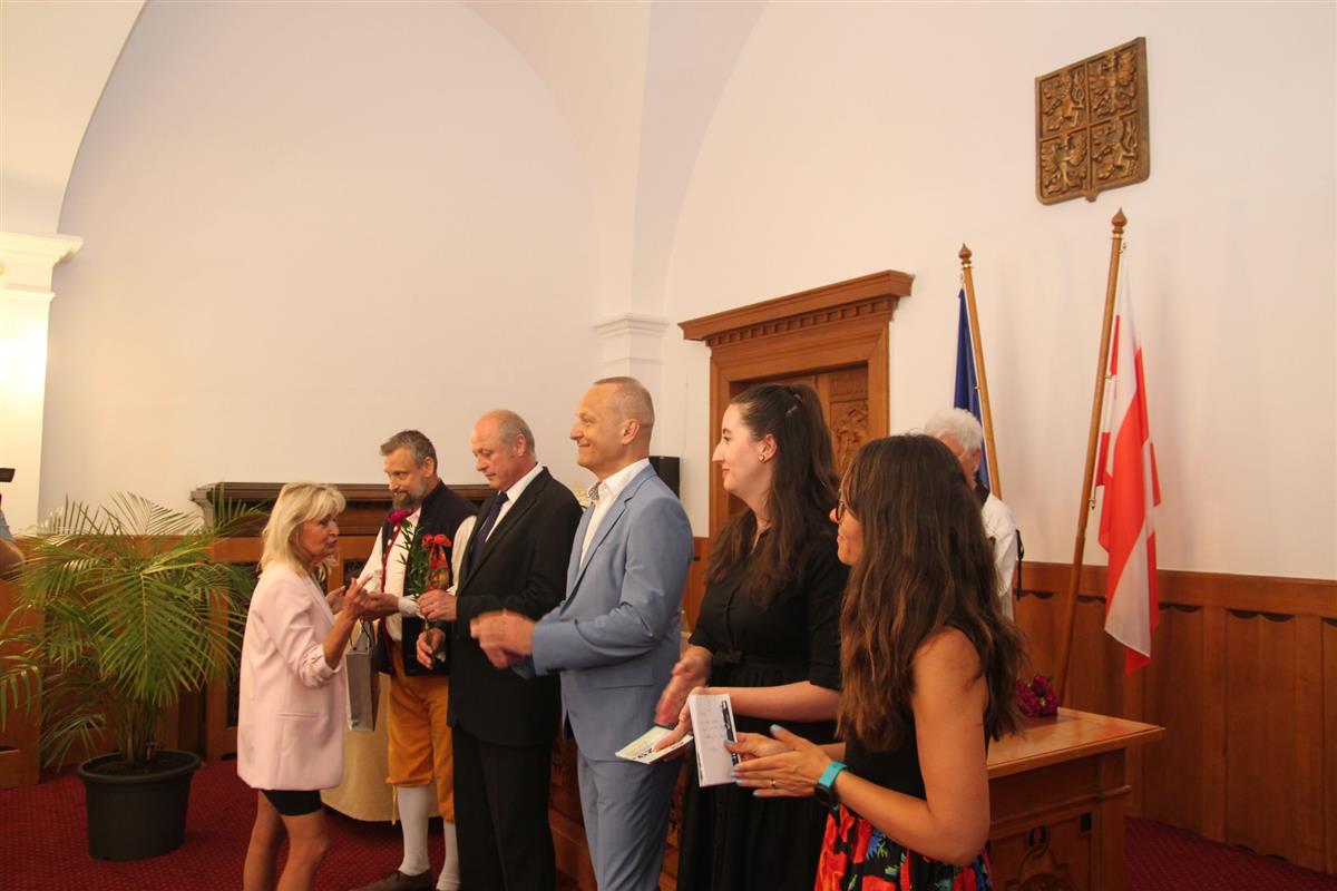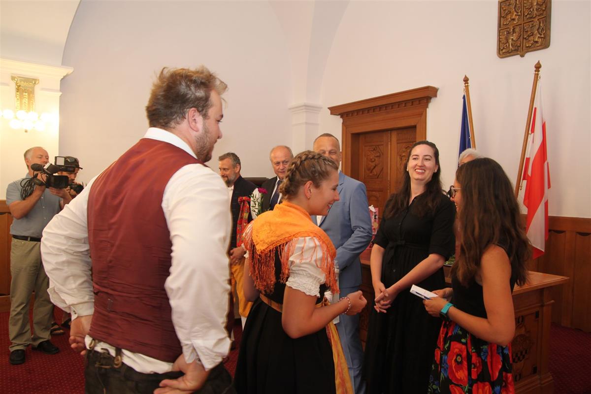 V sobotu 13. července 2024 slavnostně přivítal na klatovské radnici pan starosta Rudolf Salvetr s panem místostarostou Martinem Křížem a tajemníkem Městského úřadu v Klatovech Michaelem Novým zástupce 8 folklórních souborů.