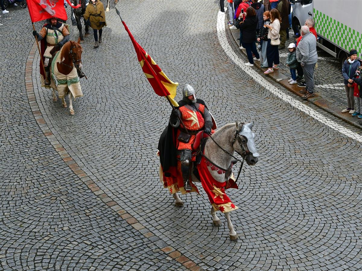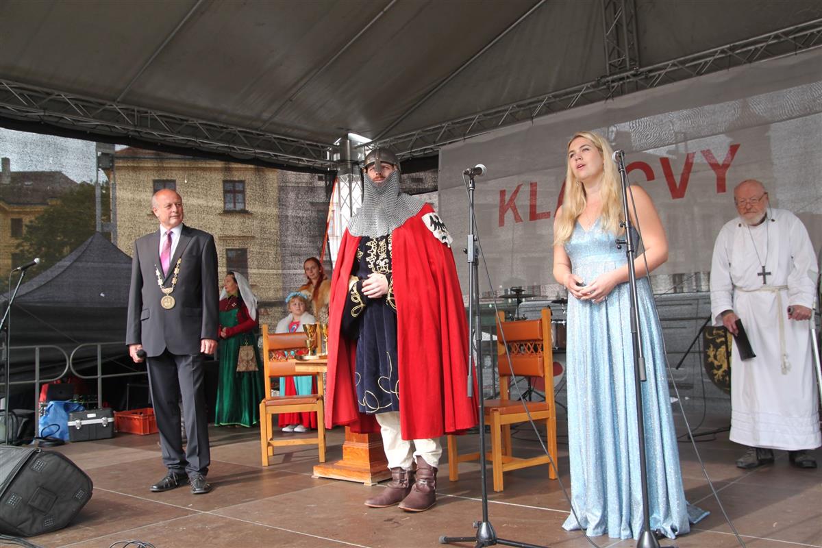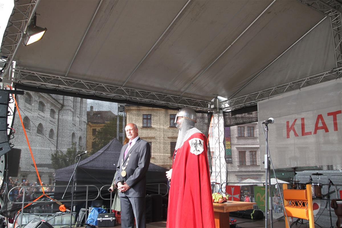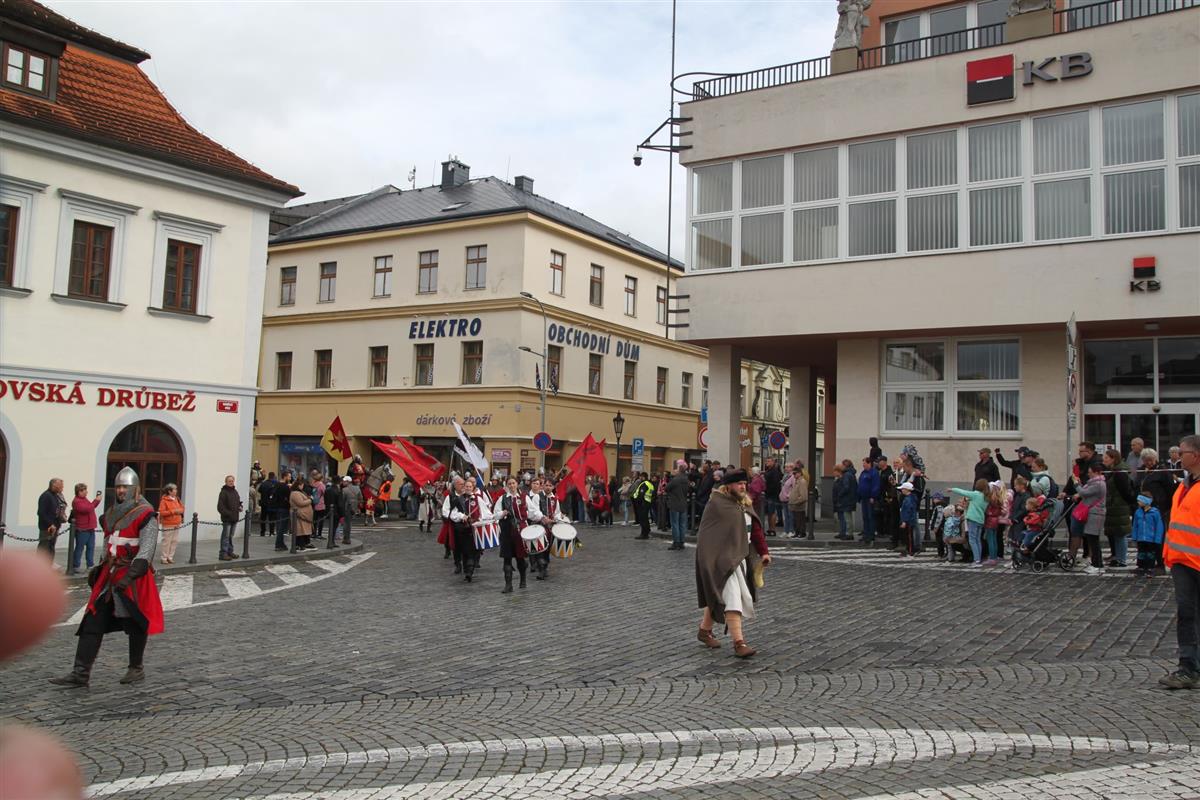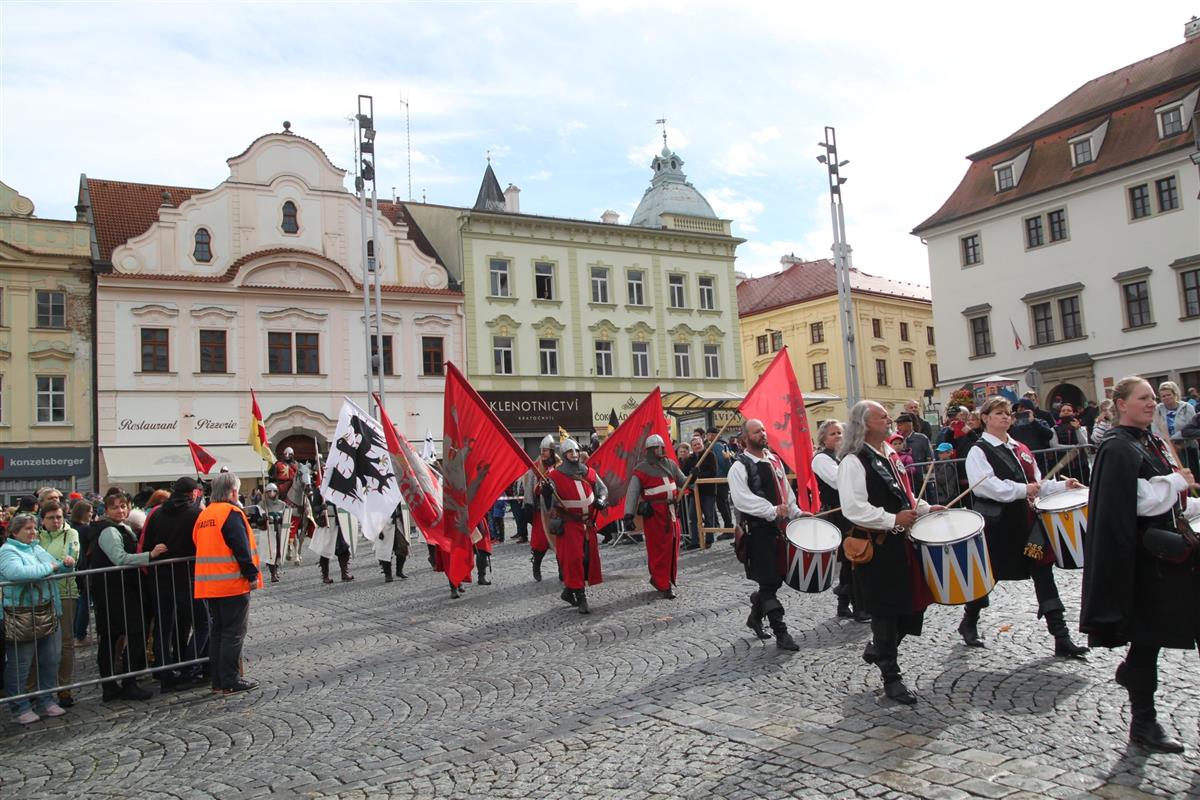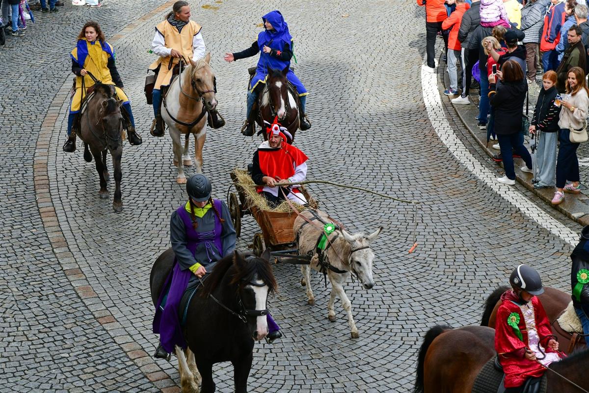 V pravé poledne se na klatovském náměstí shromáždily stovky lidí, aby přivítaly knížete Václava a jeho početnou družinu 🐎
