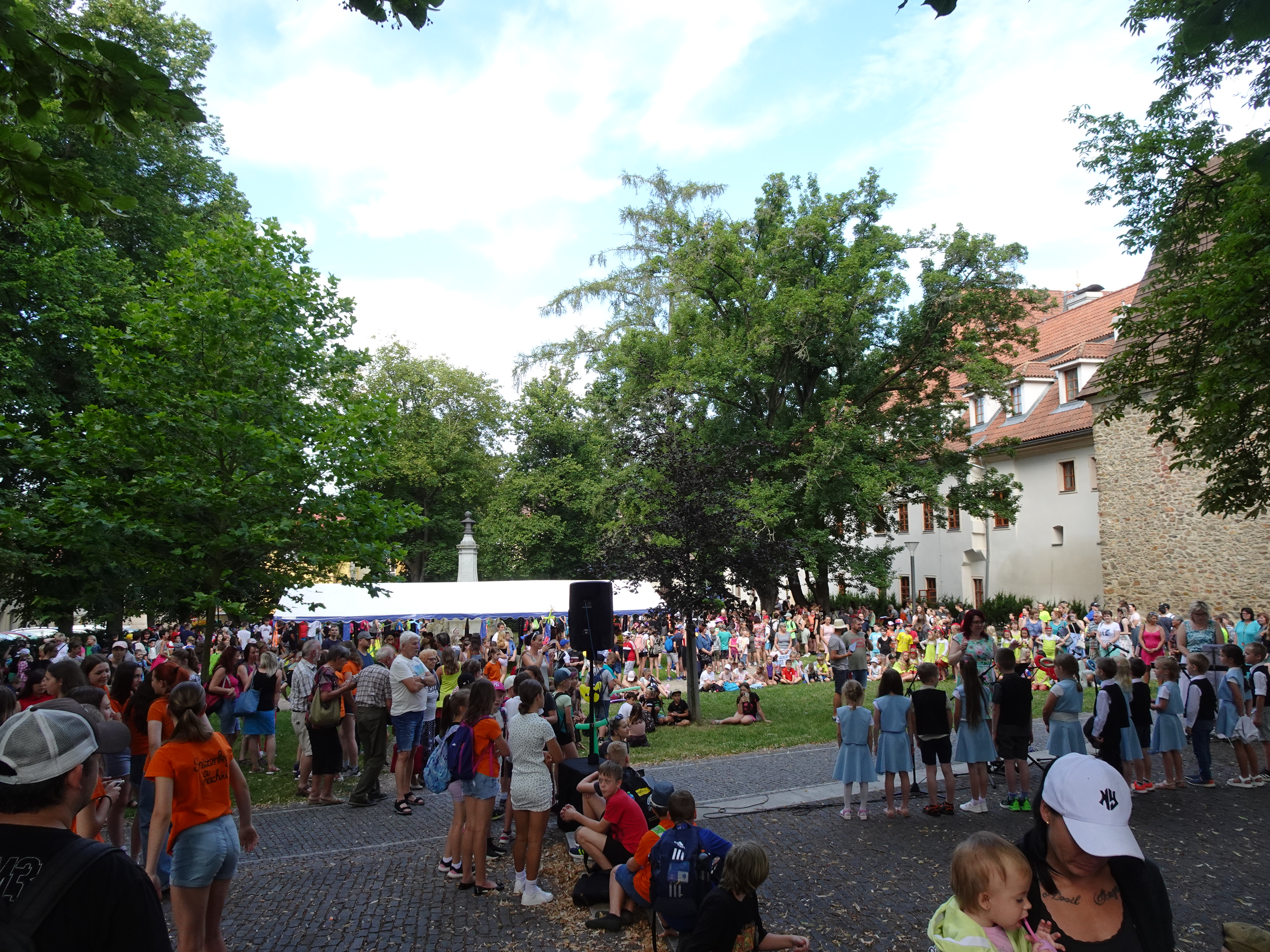 Během celého dopoledne se na pódiu ve Vrchlického sadech střídali žáci z klatovské MŠ,ZŠ s klienty z Domova pro osoby se zdravotním postižením v Bystřici/Úhl. Velice bezprostřední byla vystoupení žáků ZŠ Hálkova ul.v Klatovech. Program doplnila vystoupení žáků ze ZUŠ J. Kličky. Velkým lákadlem jako každoročně byl stánek společnosti LENOX z.s., kde si děti vyzkoušely slalom na invalidním vozíku a různé pomůcky, které pomáhají handicapovaným v jejich omezeních. Hostem středečního odpoledne byli nevidomí zástupci spolku Spolu s vámi. Tento spolek sdružuje a pomáhá nevidomým se začleněním do běžného života. Návštěvníci akce si mohli vyzkoušet kompenzační pomůcky pro nevidomé a vyzkoušet si svět opředený tmou.